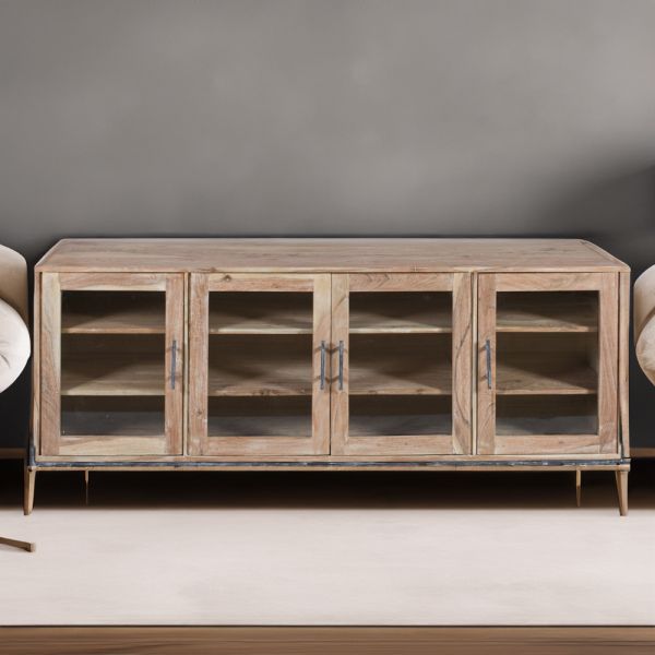 Ο Μασίφ Ξύλινος Μπουφές Βιτρίνα Attari σε λευκή πατίνα αποτελεί την ιδανική επιλογή για την αναβάθμιση του χώρου σας. Χειροποίητος με προσοχή στη λεπτομέρεια, αυτός ο μπουφές συνδυάζει την παραδοσιακή αισθητική με την μοντέρνα πρακτικότητα. Ο εντυπωσιακός σχεδιασμός του διαθέτει γυάλινες πόρτες και ράφια που επιτρέπουν την προβολή και την οργάνωση των αγαπημένων σας αντικειμένων με στυλ. Το φυσικό ξύλο σε λευκή πατίνα ταιριάζει άψογα σε κάθε σαλόνι ή τραπεζαρία, ενώ οι ανθεκτικές μεταλλικές βάσεις εξασφαλίζουν τη σταθερότητα και μακροχρόνια χρήση.
