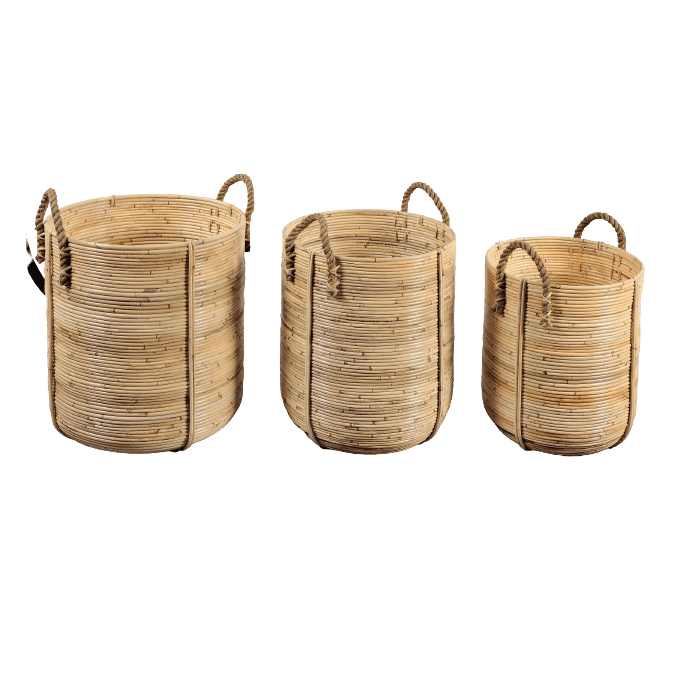 Boho baskets made of pressed bamboo and rope. Set of 3 pieces.