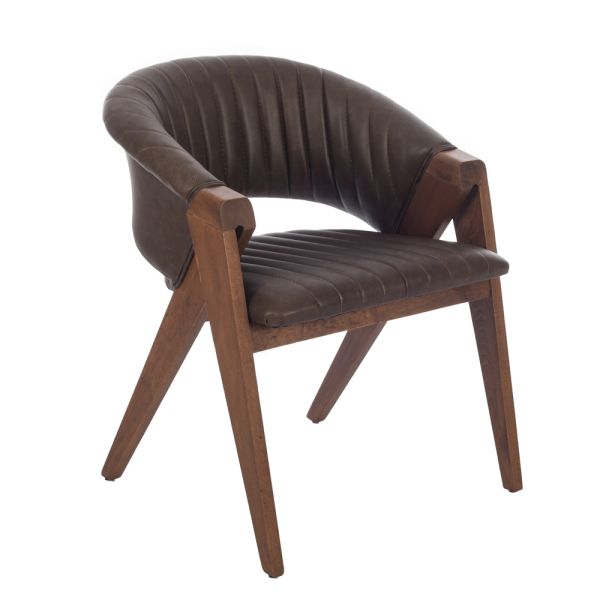 Η συνδυασμένη αισθητική του ξύλου και του τεχνόδερματος δημιουργεί έναν ζεστό και φιλόξενο χώρο, ενώ η καστανή απόχρωση προσδίδει ένα αίσθημα πολυτέλειας και άνεσης. Αναβαθμίστε τον χώρο σας με αυτήν την καρέκλα και απολαύστε μια άνετη και στιλάτη εμπειρία κάθισης κάθε φορά που θα τη χρησιμοποιείτε!