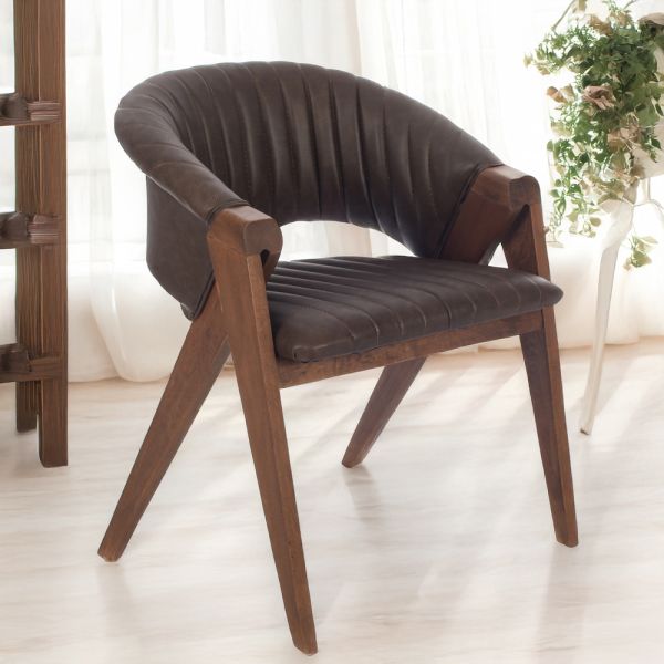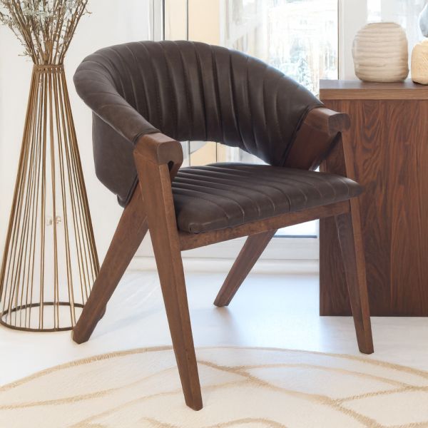 Ανανεώστε τον χώρο σας με αυτήν την εκλεπτυσμένη καρέκλα που συνδυάζει την φυσική ομορφιά του καρυδί ξύλου με την ανθεκτικότητα και την ευκολία συντήρησης του καστανού τεχνόδερματος.