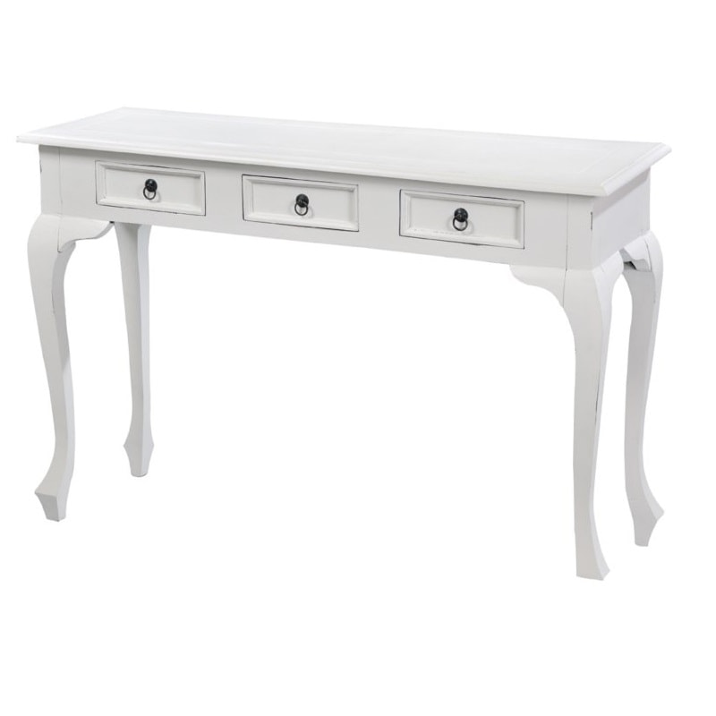 Colonial console made of mahogany wood in white patina.