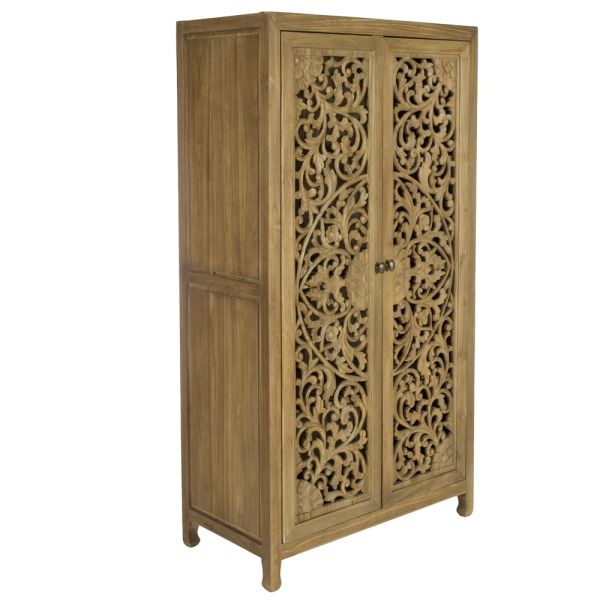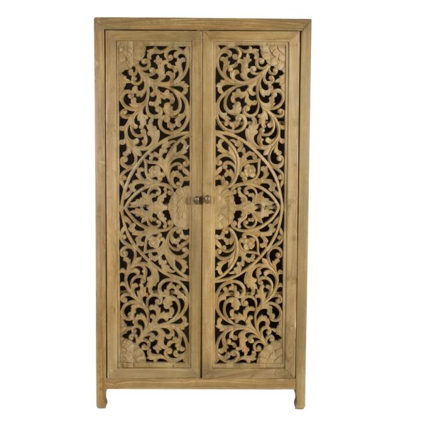 Mandala Σκαλιστή Ξύλινη Ντουλάπα σε Φυσική Απόχρωση