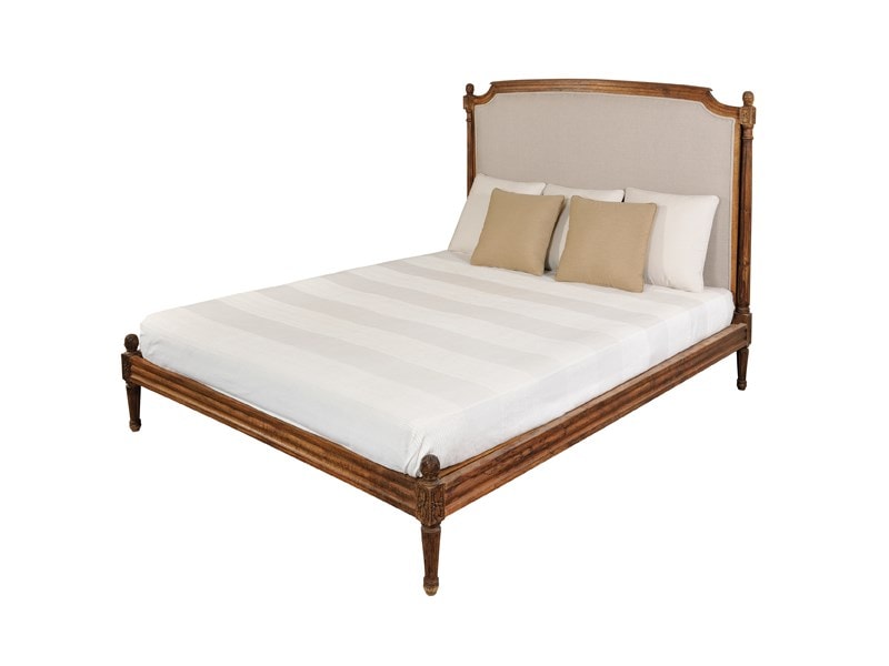 Χειροποίητο Κρεβάτι γαλλικού τύπου με ψηλό κεφαλάρι από μασίφ ξύλο Sheesham και επένδυση με λινό ύφασμα.