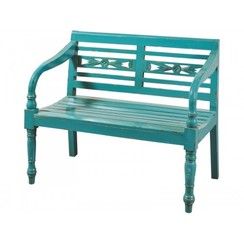 Eίναι ένα κομψό παγκάκι σε colonial στυλ, κατασκευασμένο από μασίφ ξύλο μαόνι και βαμμένο σε ιδιαίτερη petrol απόχρωση. Ο κλασικός σχεδιασμός του με τις καμπύλες γραμμές και τις διακοσμητικές λεπτομέρειες στην πλάτη προσδίδει χαρακτήρα και διαχρονική αισθητική σε κάθε χώρο.