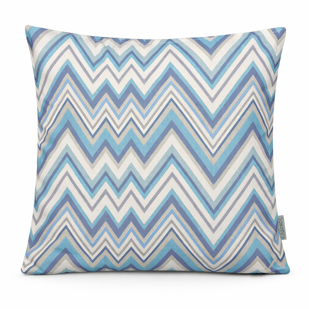 Ανανεώστε εύκολα και γρήγορα το σαλόνι ή το υπνοδωμάτιό σας με αυτό το κομψό διακοσμητικό μαξιλάρι σε μπλε και γαλάζιες αποχρώσεις. Το γεωμετρικό σχέδιο ζιγκ-ζαγκ συνδυάζει αρμονικά μπλε, γαλάζιο, γκρι και μπεζ πάνω σε ανοιχτό φόντο, δημιουργώντας ένα μοντέρνο αλλά και διαχρονικό αποτέλεσμα.