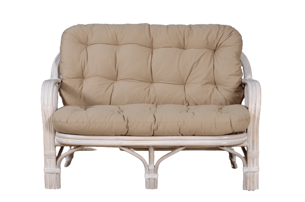 Ο καναπές συνοδεύεται από μαξιλάρια, τα οποία προσφέρουν άνεση και δημιουργούν ένα φωτεινό και αρμονικό αποτέλεσμα στον χώρο. Η white wash απόχρωση αναδεικνύει τη φυσική υφή του μπαμπού και προσδίδει ένα ελαφρύ και καλοκαιρινό ύφος.