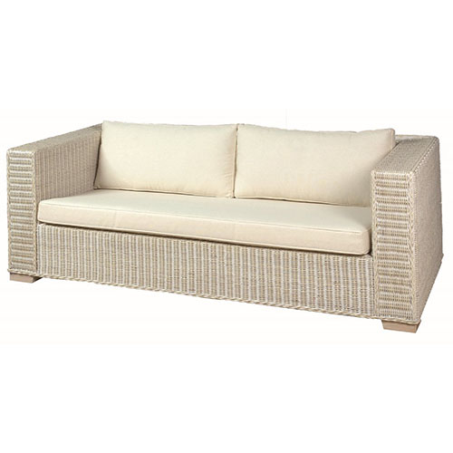 Ο καναπές συνοδεύεται από εκρού μαξιλάρια, τα οποία προσφέρουν άνεση και δημιουργούν ένα φωτεινό και αρμονικό αποτέλεσμα. Η χειροποίητη πλέξη του Rattan αναδεικνύει τη φυσική υφή του υλικού και προσδίδει μοναδικό χαρακτήρα σε κάθε κομμάτι.