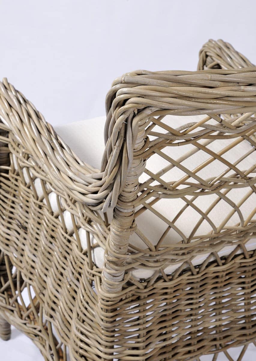 Η καρέκλα Armchair Alexander αποτελεί μια κομψή επιλογή με φυσικό χαρακτήρα, ιδανική για χώρους που θέλουν να αποπνέουν ζεστασιά και διαχρονική αισθητική. Είναι κατασκευασμένη από φυσικό rattan Kubu Grey σε εκρού απόχρωση, προσφέροντας μοναδική υφή και αυθεντική εμφάνιση.