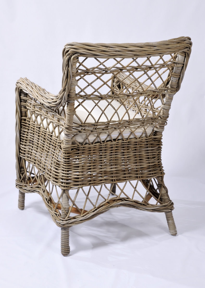 Καρέκλα Armchair Alexander από Φυσικό Rattan Kubu Grey με Μαξιλάρι – 33328