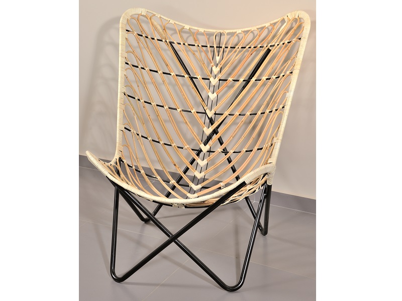 Η lounge πολυθρόνα Butterfly από φυσικό Rattan με μεταλλικά πόδια συνδυάζει κομψότητα και άνεση.
