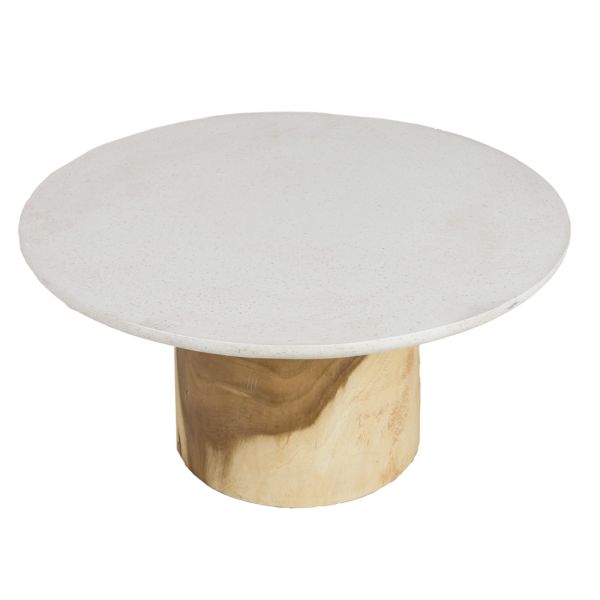 Solid Καφέ Ξύλινο Τραπέζι Σαλονιού με Λευκή Επιφάνεια Terrazzo